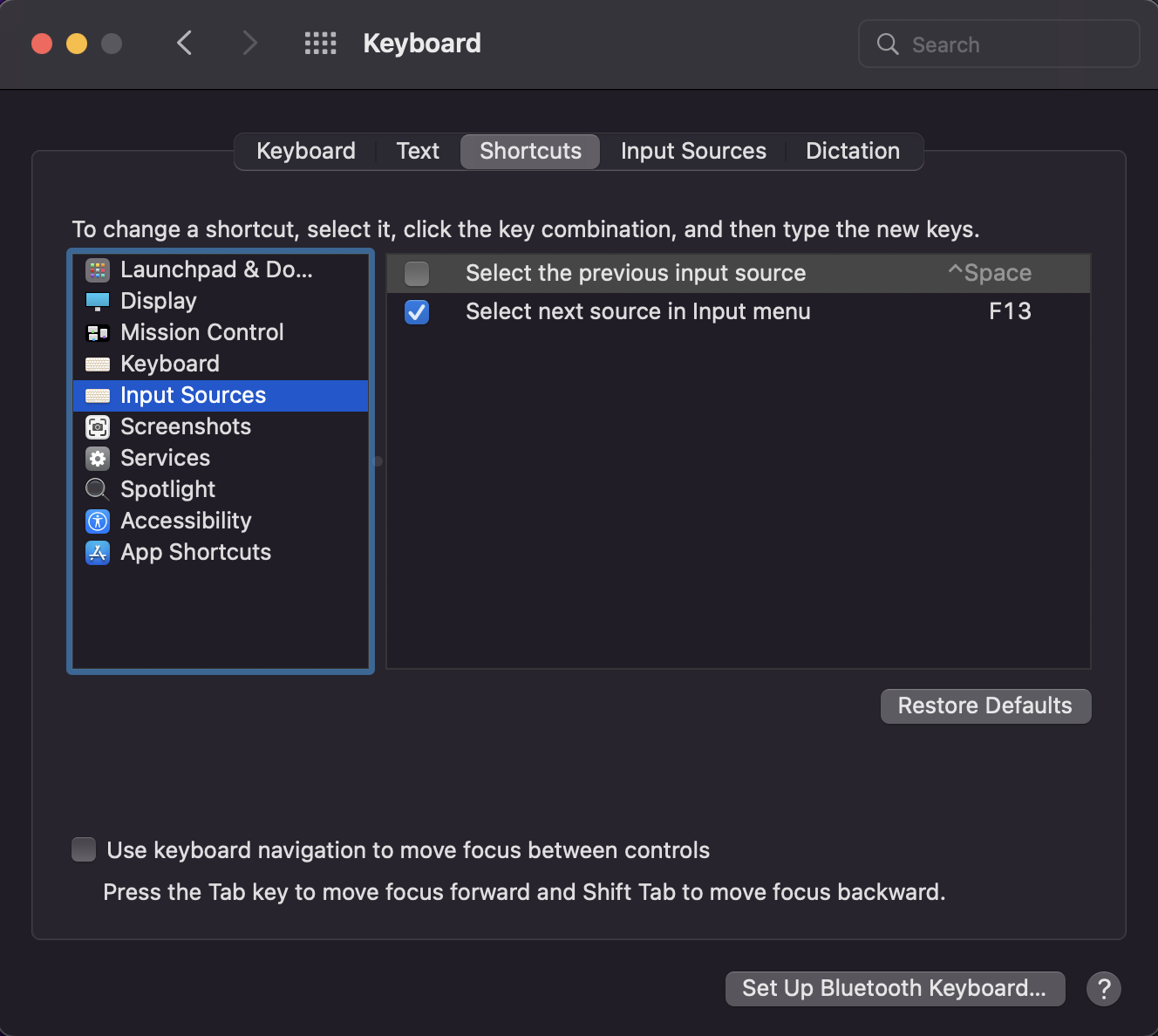 다음 입력소스로 변경이 아닌 이전 입력 소스로 변경을 사용하고 있어서 딜레이가 있었기 때문에 다음 입력소스로 변경에 한영키를 두고 사용하면 한영키에 딜레이 없이 사용할 수 있다.