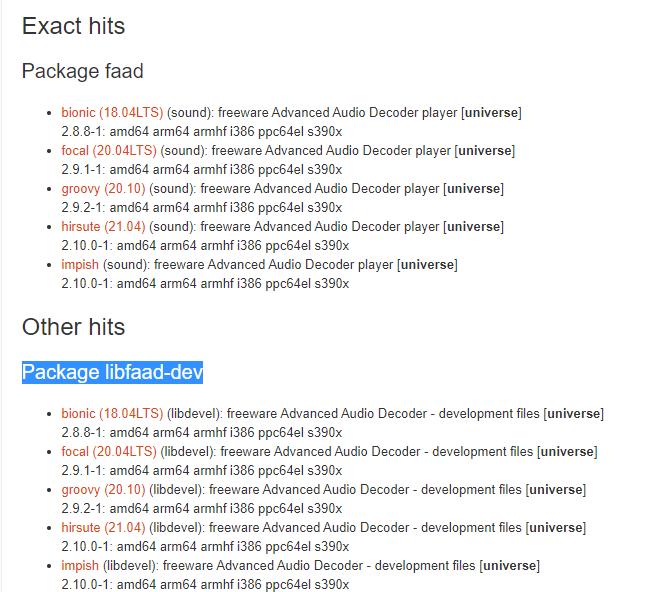 ubuntu faad2 codec library를 검색하면 패키지 명을 알 수 있다.