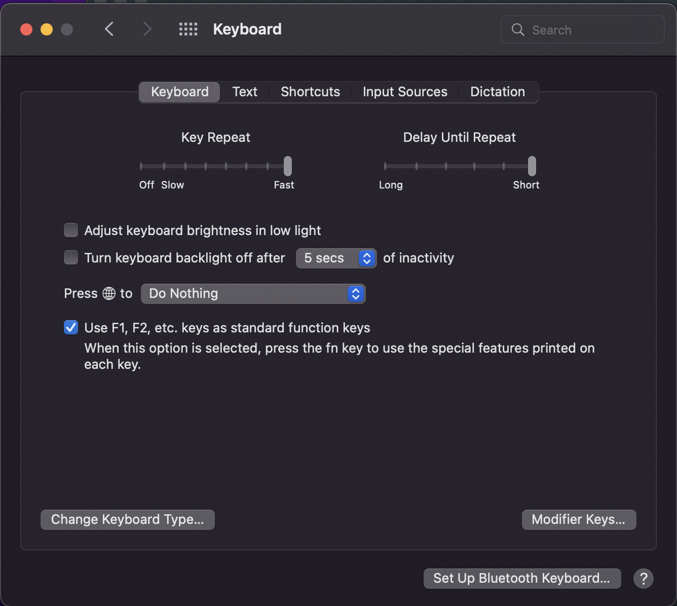 또한 맥북의 지우는 속도가 답답했는데 단순하게 반복입력속도와 반복지연시간을 짧게 해주면 간단하게 해결되는 문제였다.